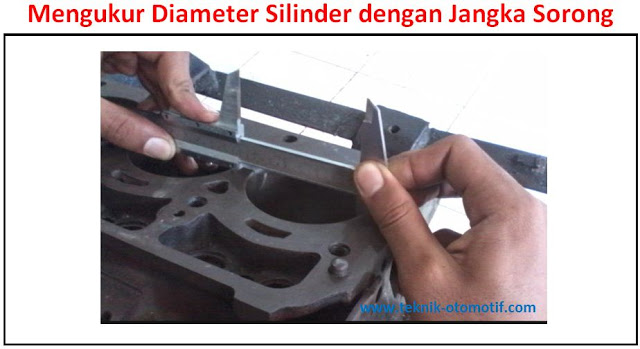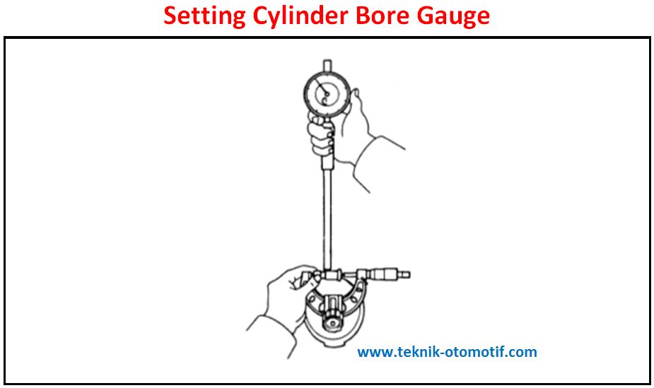 Memasukkan Cylinder Bore Gauge pada silinderMasukkan alat ukur Cylinder Bore Gauge secara diagonal ke dalam lubang silinder. Gerak-gerakkan atau goyang-goyangkan Cylinder Bore Gauge sampai didapatkan penyimpangan jarum pointer bergerak ke kanan paling jauh.