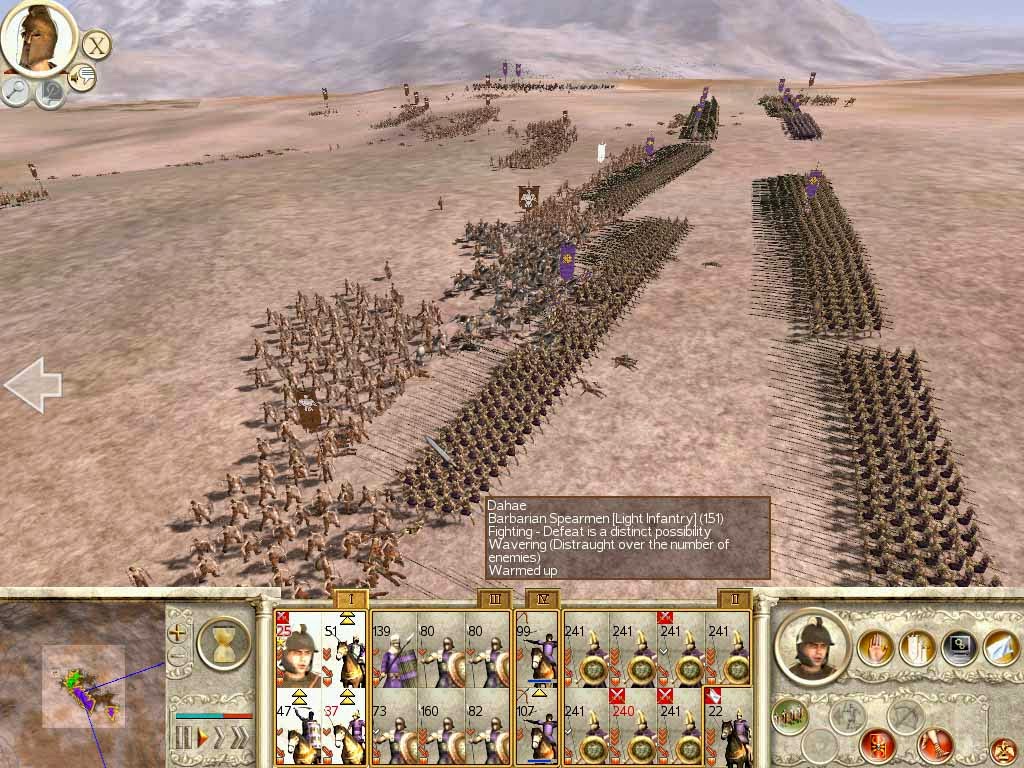 Ketika tentara pemain bertemu tentara musuh, real-time pertempuran taktis 3D dimulai, yang merupakan bagian lain dari gameplay di Roma : Total War.